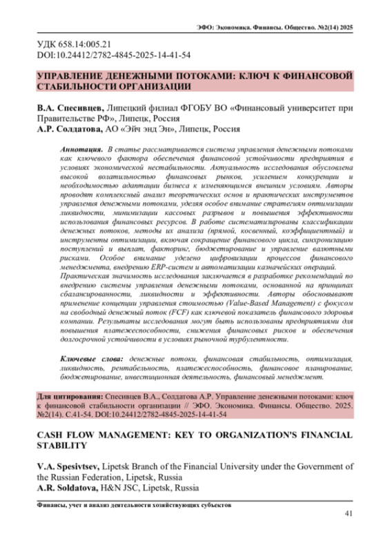 13. Российская электронная библиотека. Управление денежными потоками предприятия [Электронный ресурс]. - URL: https://elibrary.ru/item.asp?id=46038985 (дата обращения: 05.05.2025).