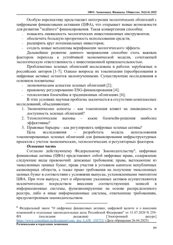 Статья посвящена исследованию инновационного механизма финансирования экологических проектов через токенизированные зеленые облигации – цифровые активы, объединяющие преимущества традиционных долговых инструментов и блокчейн-технологий. В условиях глобального экологического кризиса и перехода к устойчивому развитию авторы обосновывают необходимость новых подходов к “зеленому” финансированию, особенно актуальных для промышленных регионов России. Исследование раскрывает экономические, технологические и правовые аспекты токенизации зеленых облигаций, демонстрируя их потенциал для решения ключевых проблем экологического финансирования: высокой стоимости привлечения средств, низкой ликвидности и ограниченной доступности для розничных инвесторов. На примере Липецкой области разработана практическая модель, предполагающая: дробление облигаций на цифровые токены номиналом 50-100 рублей, их распространение через банковские приложения, создание системы цифрового мониторинга экологических результатов. Особое внимание уделено сравнительному анализу эффективности: токенизация сокращает транзакционные издержки на 60- 70% по сравнению с традиционными облигациями, обеспечивая доходность на 20-30% выше банковских вкладов. Авторы также рассматривают риски (правовая неопределенность, волатильность) и предлагают меры по их минимизации, включая специальный правовой режим и налоговые льготы.