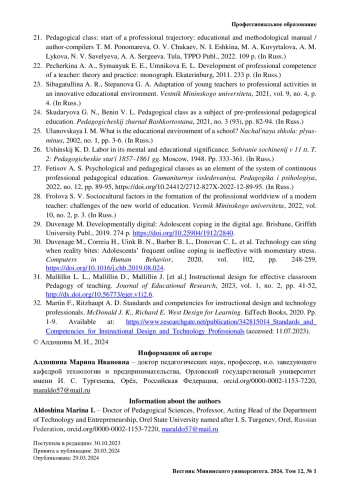 18. Мусхаджиева Т. А. Природа и сущность межличностных отношений между субъектами педагогической деятельности // Вестник Мининского университета. 2022. Т. 10, № 4. С. 4.