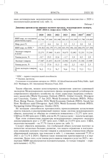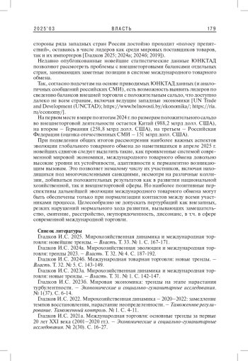 1. Гладков И.С. 2025. Мирохозяйственная динамика и международная торговля: новейшие тренды. - Власть. Т. 33. № 1. С. 167-171. EDN: WUAVEW