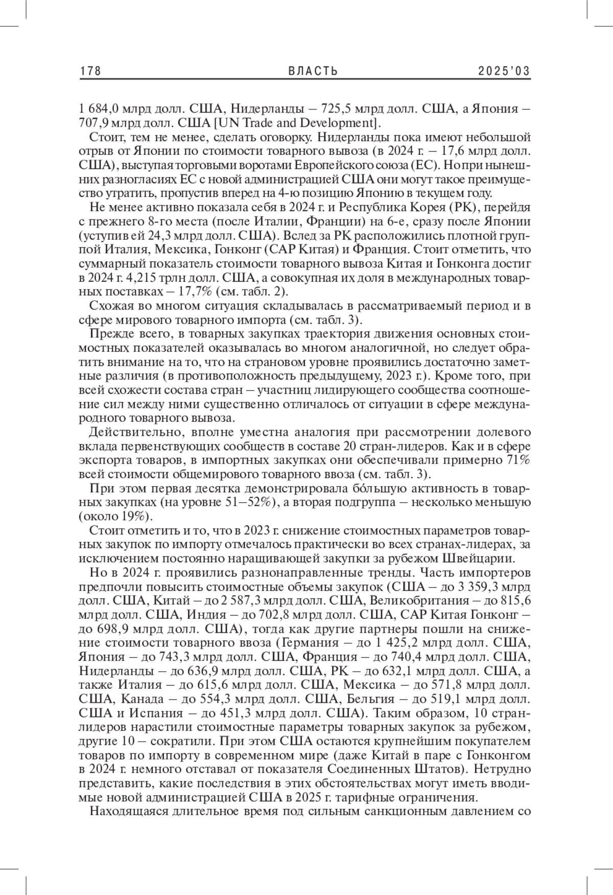 3. Гладков И.С. 2024б. Международная товарная торговля: новые тренды. - Власть. Т. 32. № 5. С. 143-149. EDN: AANGKH