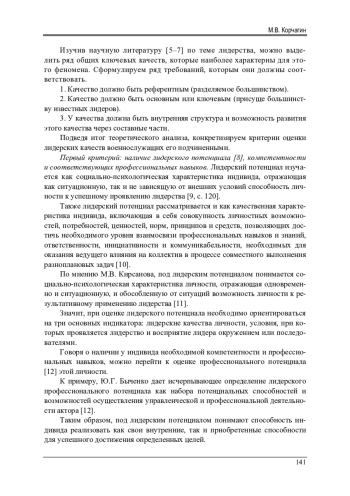 12. Быченко Ю.Г. Способности к профессиональной адаптации в системе профессионального потенциала российских офицеров // Известия Юго-Западного государственного университета. Экономика. Социология. Менеджмент. - 2023. - Т. 13, № 1. - С. 215-226. DOI: 10.21869/2223-1552-2023-13-1-215-226 EDN: QLVCSQ
