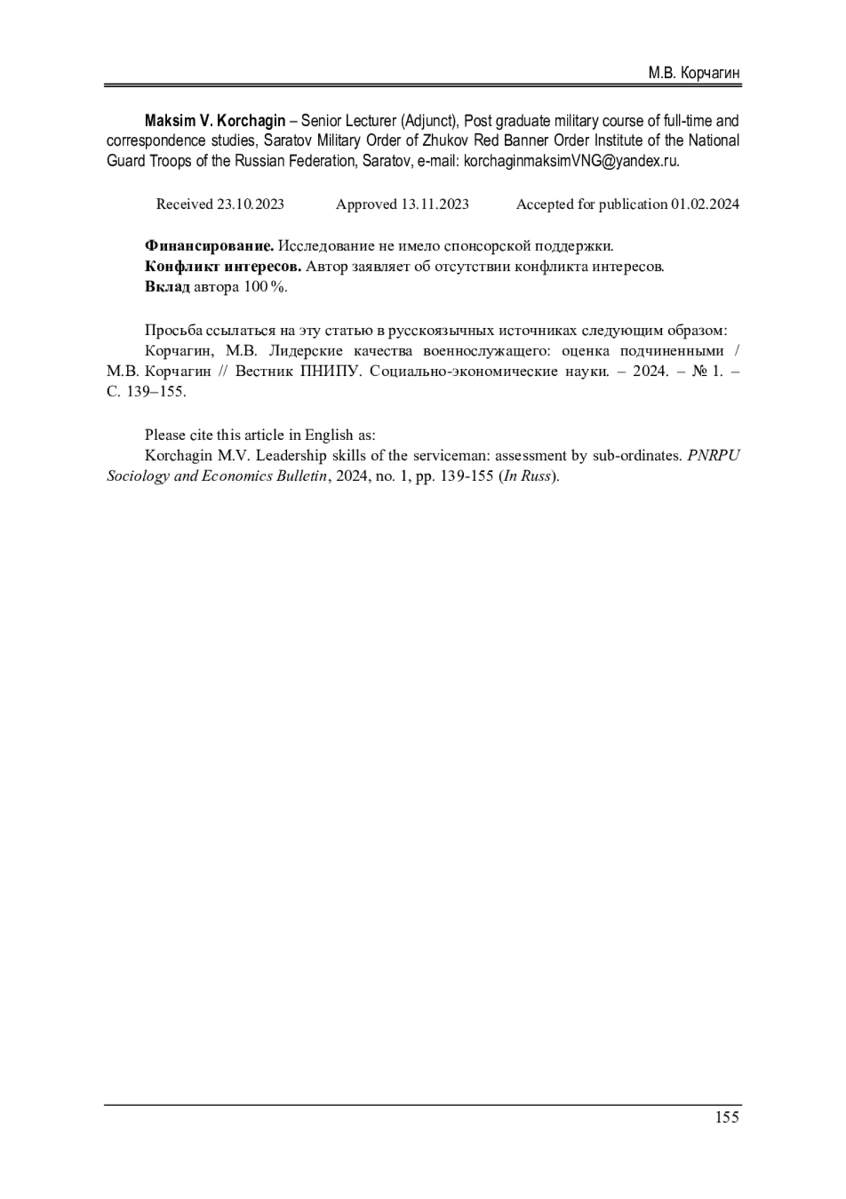 10. Щукин М.А. Готовность будущих офицеров войск национальной гвардии Российской Федерации к профессиональной деятельности // Направления и перспективы развития образования в военных институтах войск национальной гвардии Российской Федерации: сб. науч. ст. XIII Межвуз. науч.-практ. конф. с междунар. участием / Новосиб. воен. ин-т им. генерала армии И.К. Яковлева войск нац. гвардии Рос. Федерации. - Новосибирск, 2021. - Т. 2. - С. 124-129. EDN: SEFVBM