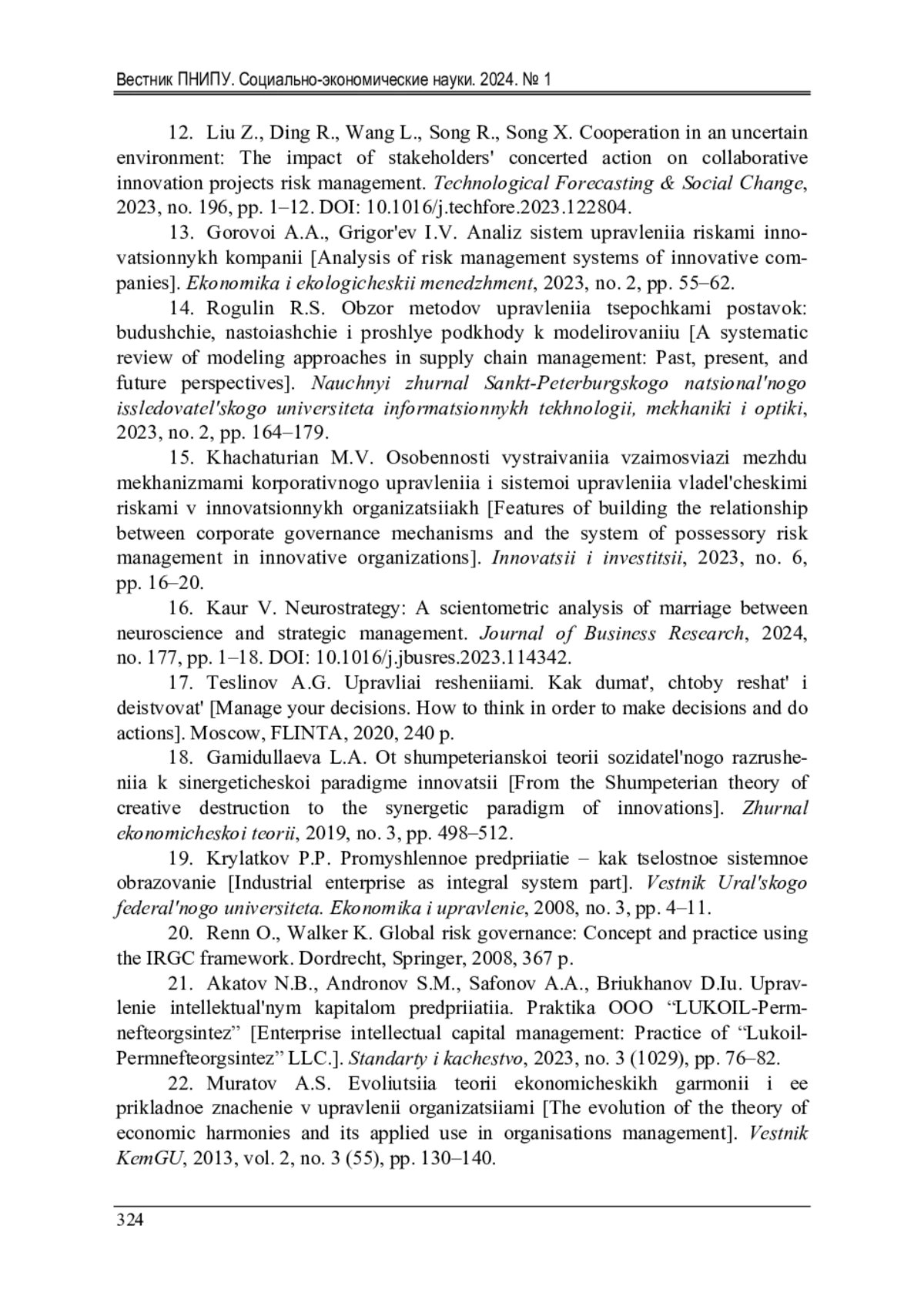 13. Горовой А.А., Григорьев И.В. Анализ систем управления рисками инновационных компаний // Экономика и экологический менеджмент. - 2023. - № 2. - C. 55-62. EDN: CQJKRR