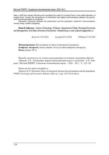 Существует определенное противоречие: с одной стороны, региональное и муниципальное управление должны осуществлять компетентные лица, обладающие специальным образованием и опытом работы. С другой, аксиомой является утверждение, что население также должно привлекаться к управлению, поскольку только такое участие гарантирует демократичность общества. При этом известно, что население в целом слабо информировано о проблемах развития территории, пассивно и не организовано. Это противоречие является базовой проблемой статьи и показывает ее актуальность. Разрешение противоречия лежит в понимании степени вовлечения населения к управлению и анализе форм взаимодействия власти и населения. Цель статьи - исследовать новые электронные формы взаимодействия власти и населения (электронные обращения, дистанционное голосование, краудсорсинговые платформы, инициативное бюджетирование) и дать им оценку. В качестве методологической базы в работе использовался широкий круг работ отечественных и зарубежных авторов. Эмпирическую базу составляет анализ статистических данных, опубликованных на официальных сайтах правительства Свердловской области и администрации муниципального образования город Екатеринбург. Также используются материалы 30 глубинных интервью и 3 фокус-групп. Результаты исследования показывают, что новые электронные формы взаимодействия получили широкое распространение. Контакты власти и населения стали более интенсивными и разнообразными. От практики информирования и консультирования намечается движение в сторону вовлечения населения в процесс распределения части бюджетных средств. В целом повышается прозрачность информационно-цифровых коммуникаций власти и населения.