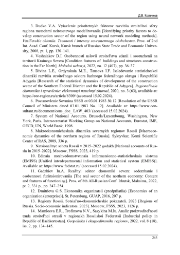 14. Мамлеева, Э.Р. Анализ производительности труда строительной отрасли в регионах Российской Федерации / Э.Р. Мамлеева, Н.В. Трофимова, М.Ю. Сазыкина // Геополитика и экогеодинамика регионов. - 2022. - Т. 8 (18), вып. 2. - С. 134-145. EDN: OKVHMX