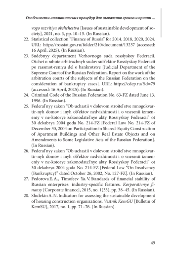 3. Воеводин О. И. К вопросу о проблемах банкротства застройщиков // Научный сетевой журнал “Столыпинский вестник”. 2023. № 10.