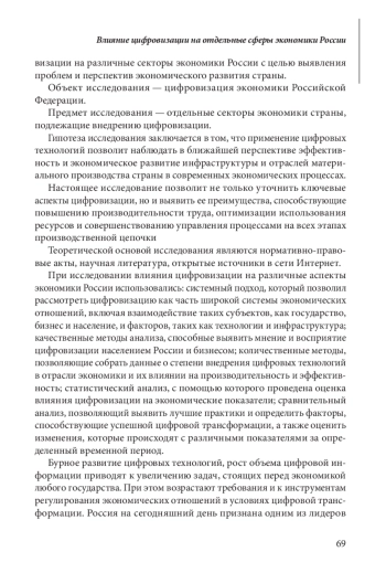 Цифровизация отраслей экономки Российской Федерации оказывает на них значительное влияние, трансформируя бизнес-процессы, повышая эффективность, оптимизируя затраты и создавая новые возможности для роста. Актуальность работы заключается в исследовании влияния цифровизации, которая активно проникает в отдельные отрасли экономики, вызывая в них коренные изменения в повышении эффективности производства и значительном снижении затрат. Авторы в статье рассматривают аспекты трансформации экономики и общества, которая в настоящее время вызвана стремительным развитием цифровых технологий, что диктует государственным структурам, обществу и частным компаниям активно инвестировать в цифровизацию, осознавая ее ключевую роль в повышении эффективности экономики государства. Предложены рекомендации по внедрению цифровых технологий в различных секторах экономики страны.