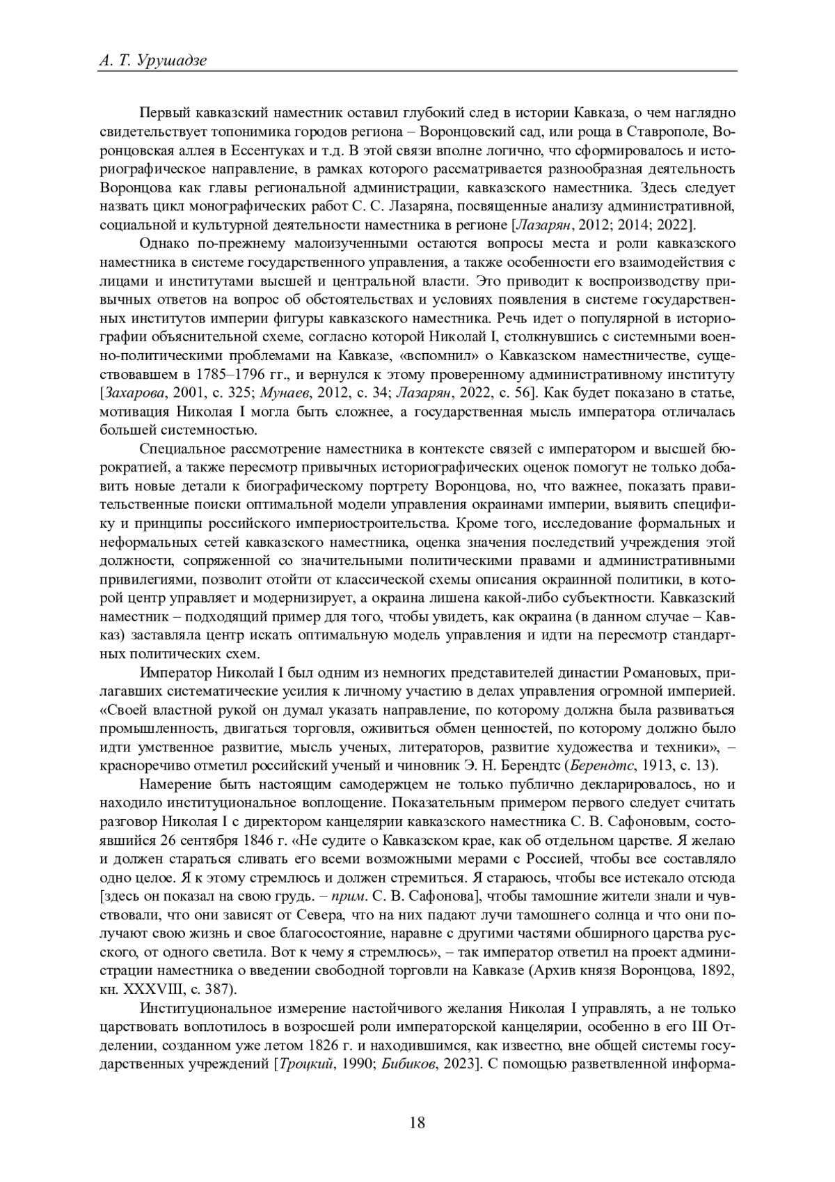 26. Лазарян С.С. Военно-политическая и административно-правовая деятельность князя М.С. Воронцова в Кавказском крае, 1845-1854 гг. Пятигорск: ПГЛУ, 2012. 322 с. ISBN: 978-5-4220-0329-7 EDN: QPXJCJ