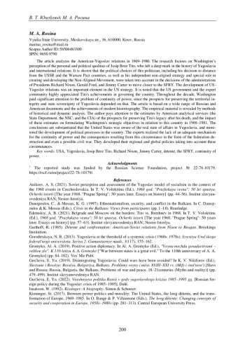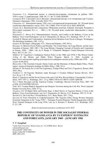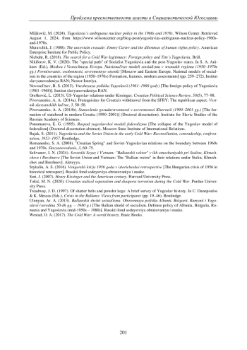 23. Никифоров К.В. “Особый путь” социалистической Югославии и постюгославских государств // Москва и Восточная Европа. Национальные модели социализма в странах региона (1950-1970-е гг.). Формирование, особенности, современные оценки / отв. ред. А.С. Аникеев. М.: Ин-т славяноведения РАН; СПб.: Нестор-История, 2020. С. 259-272. DOI: 10.31168/4469-1634-4.14 EDN: LMHJFJ