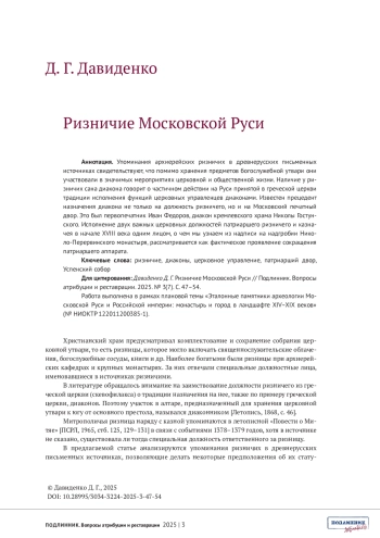 3. Астафьева Н. А. Надгробный покров из ризницы Николо-Перервинского монастыря. Атрибуция музейного памятника // Подлинник. Вопросы атрибуции и реставрации. 2024. № 1. С. 74-83.