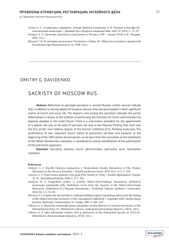 4. Борисова Т. С. О датировке древнейшей из сохранившихся описей Успенского собора // Успенский собор Московского Кремля. Материалы и исследования. М.: Наука, 1985. С. 246-259.