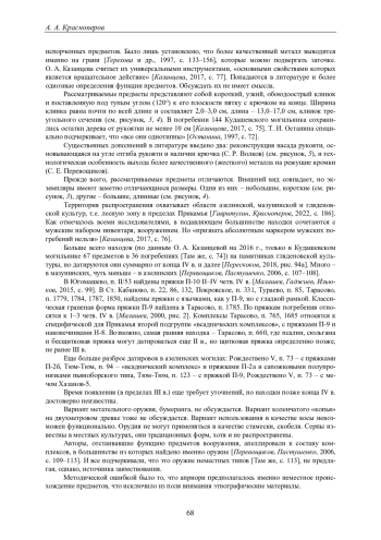 1. Волков С.Р. Комплекс вооружения из погребений с т.н. “косами-горбушами” IV-V вв. в Среднем Прикамье // Тез. докл. II Рос. университ.-акад. науч.-практ. конф. Ижевск, 1995. Ч. 1. С. 16.
