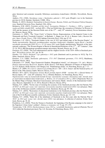 15. Никитина Н.В. К вопросу о восстановлении хозяйства Смоленской губернии после Отечественной войны 1812 года // 1812 год: война и мир: материалы всерос. науч. конф. Смоленск: Свиток, 2009. С. 99-106.