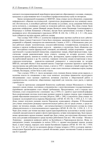 На основе автодокументальных и делопроизводственных источников проанализированы значение и основные функции советских Домов ученых в 1920-1930-е гг., их место в системе государственного поощрения научных работников. Реконструированы перемены в структуре задач, которые государственная научная политика ставила перед этими организациями. Изменение функций Домов ученых влияло на статус их членов: за 20 лет существования эти уникальные в своем роде объединения научных работников превратились в оплот советской витринной дипломатии и форму конструируемой сверху элитарности. Эти организации обеспечивали продуктивный досуг научной элиты, который одновременно приносил видимую (а именно - просветительскую) пользу обществу. Активная готовность участвовать в решении поставленных властью задач вознаграждалась для членов Домов ученых доступом к материальным благам и уникальным культурным мероприятиям. Созданные во многих научных центрах, эти организации становились локусами междисциплинарной профессиональной коммуникации, общения с представителями смежных научных отраслей, дискуссий во время докладов иностранных исследователей и в то же время обеспечивали ряд привилегий, касавшихся сферы досуга. Эффект от сочетания перечисленных и ряда иных функций (в том числе релаксационных, оздоровительных, просветительских и пр.) превратил Дома ученых не только в центры коллективной научной мысли, но и в один из символов элитарности части советских научных работников. По мере расширения функций и роста числа их членов возрастали и риски девальвации членства в этих объединениях. В связи с этим с начала 1930-х гг. стал заметен конфликт между социальными ролями общественника и успешного ученого. К концу 1930-х гг. Дома ученых с ограниченным доступом и собственными жесткими внутренними корпоративными правилами стали полем конструирования элитарности внутри профессиональной субкультуры работников научно-исследовательских институтов, некоторого разделения на тех, кто имел членский билет Дома ученых, и на тех, кто не имел его, в общей массе академических работников.