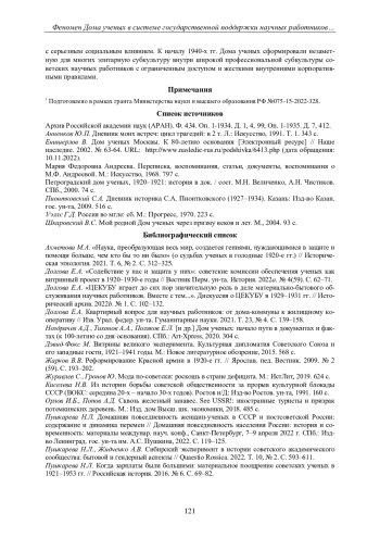 2. Долгова Е.А. “Содействие у нас и защита у них”: советские комиссии обеспечения ученых как витринный проект в 1920-1930-е годы // Вестник Перм. ун-та. История. 2022a. № 4(59). С. 62-71. EDN: REURYY