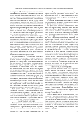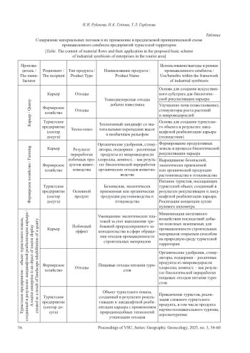 Цель - разработка схемы промышленного симбиоза предприятий разных отраслей в туристической зоне для создания замкнутых технологических циклов, обеспечения безотходности и формирования новых туристских объектов путем ландшафтной реабилитации карьеров с использованием тонкодисперсной фракции отходов добычи известняка в биотехнологических процессах. Материалы и методы. Исследование проводилось на примере города-курорта Сочи с применением системного подхода и организационно-функционального моделирования. Схема основана на концепции циркулярной экономики и результатах изучения инновационных технологий обращения с отходами. Результаты и обсуждение. Выявлены предпосылки и проблемы формирования циркулярной экономики туризма. Разработана схема промышленного симбиоза субъектов трех отраслей: отработанного карьера, малых фермерских хозяйств и туристского предприятия, с описанием материальных потоков. Модель интегрирует биотехнологии утилизации отходов добычи известняка и сельхозпроизводства. Показана возможность создания замкнутых циклов, уменьшающих негативное воздействие на среду, поддерживающих местное сельское хозяйство и формирующих новые туристские продукты. Приведены примеры реализованных проектов ландшафтной реабилитации карьеров. Выводы. Предложенная схема обеспечивает экономические выгоды, экологические и социальные преимущества. Она может служить основой для развития устойчивого и научно-познавательного туризма в районах отработанных карьеров, способствуя экологической безопасности и развитию циркулярной экономики на Черноморском побережье России.