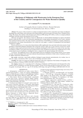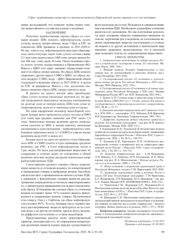 9. Лукьянов К.В., Коронкевич Н.И. Особенности распределения сточных и возвратных вод на территории европейской части России II Известия РАН. Серия географическая, 2022, т. 86, № 5, с. 763-778.