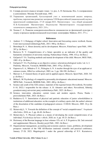1. Андреев В. И. Педагогика высшей школы. Инновационно-прогностический курс: учебное пособие. Казань: Центр инновационных технологий, 2013. 500 с.
