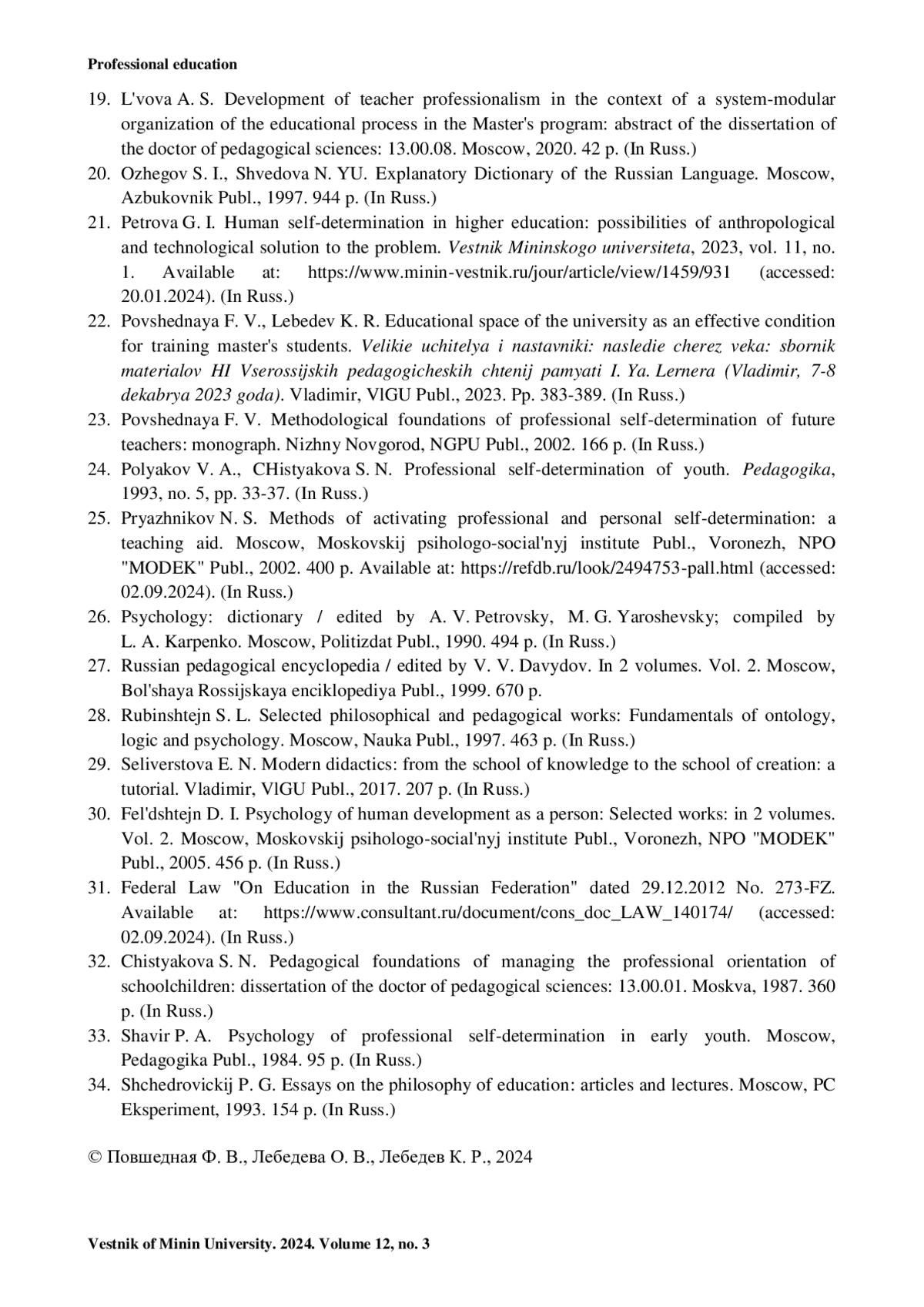 21. Петрова Г. И. Самоопределение человека в высшем образовании: возможности антропологического и технологического решения проблемы // Вестник Мининского университета. 2023. Т. 11, № 1. URL: https://www.minin-vestnik.ru/jour/article/view/1459/931 (дата обращения: 02. 09. 2024).