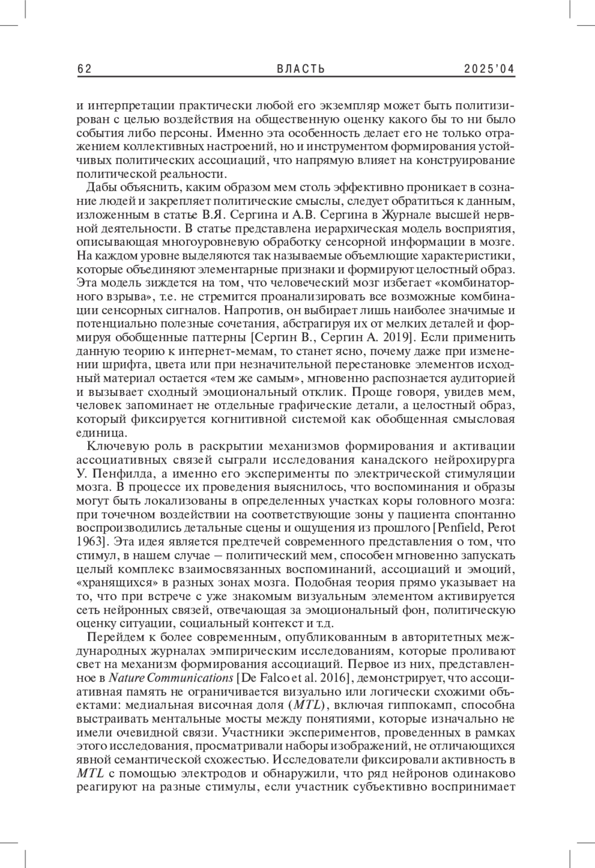 7. Penfield W., Perot P. 1963. The Brain’s Record of Auditory and Visual Experience: A Final Summary and Discussion. - Brain. Vol. 86. No. 4. P. 595-696. EDN: IMBGQB