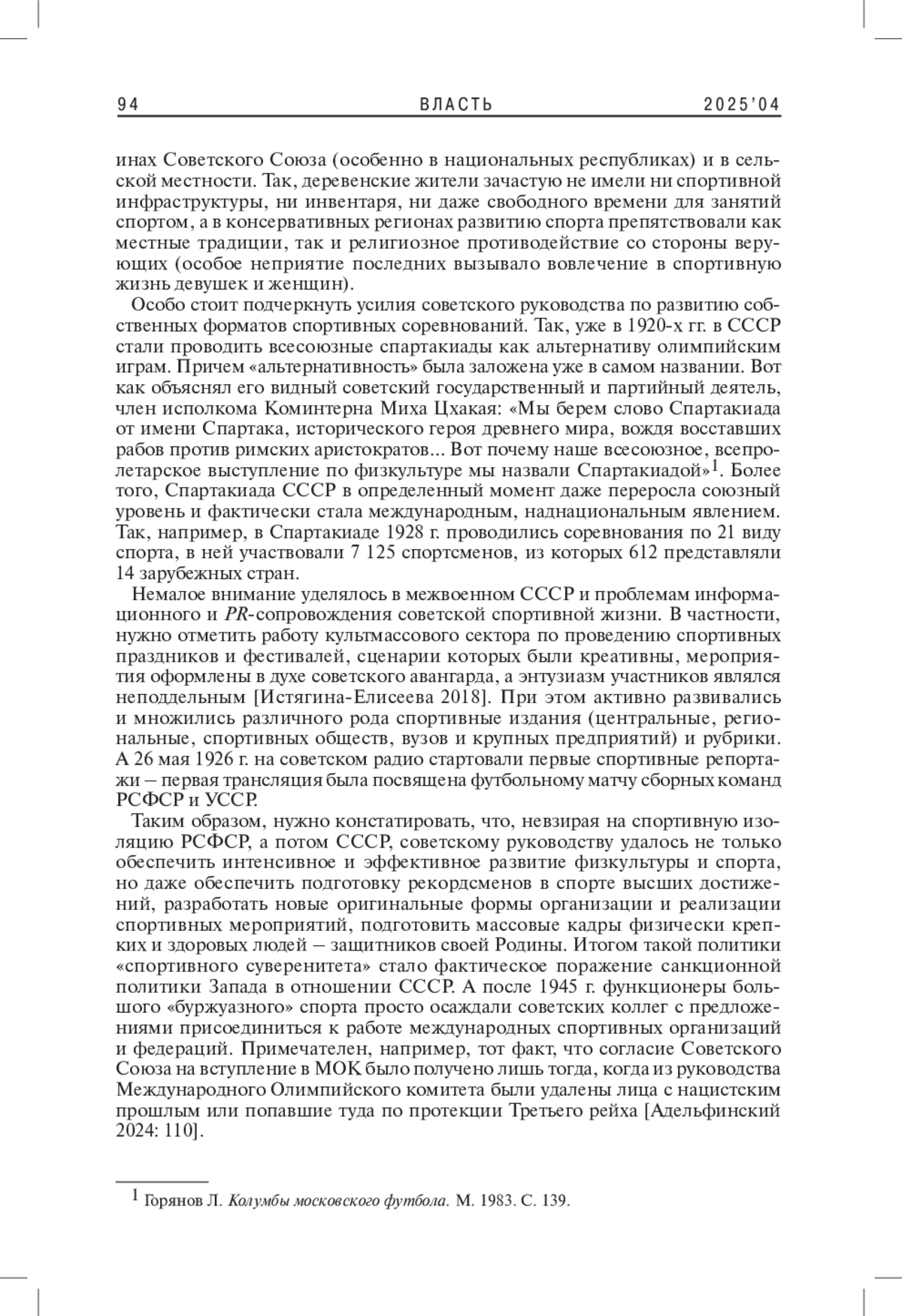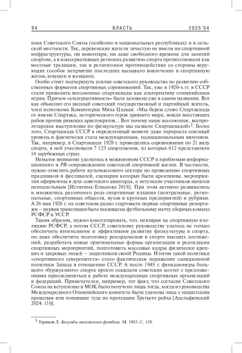 5. Копысов Н.Б. 2024. Советская политика в области “спорта высших достижений” в 1920-1930-х гг. - Вестник РГГУ. Сер. Политика. История. Международные отношения. № 1. С. 104-106. EDN: XKNUMK