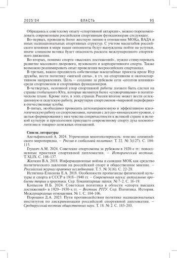 6. Порошин Д.А. 2023. Пути противодействия политике наднациональных институтов по дискриминации российской спортивной дипломатии. -Среднерусский вестник общественных наук. Т. 18. № 2. С. 185-203. EDN: EWLHNI