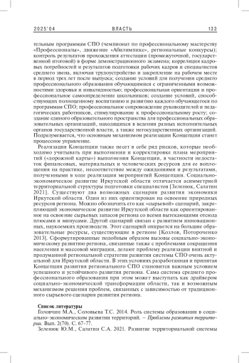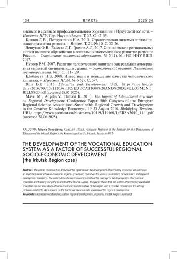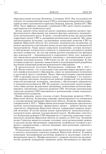 КАЛУГИНА Т. Г. РАЗВИТИЕ СИСТЕМЫ ПРОФЕССИОНАЛЬНОГО ОБРАЗОВАНИЯ КАК ФАКТОР УСПЕШНОГО РЕГИОНАЛЬНОГО СОЦИАЛЬНО-ЭКОНОМИЧЕСКОГО РАЗВИТИЯ (НА ПРИМЕРЕ ИРКУТСКОЙ ОБЛАСТИ) // ВЛАСТЬ. 2025. ТОМ 33 № 4