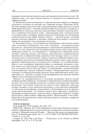2. Парма Р.В., Кравчук И.Д. 2024. Цифровые технологии внешнего деструктивного информационно-технологического воздействия на жителей приграничных с Украиной регионов России. - Вестник Московского университета. Сер. 12. Политические науки. № 2. С. 114-129. DOI: 10.55959/MSU0868-4871-12-2024-2-2-114-129