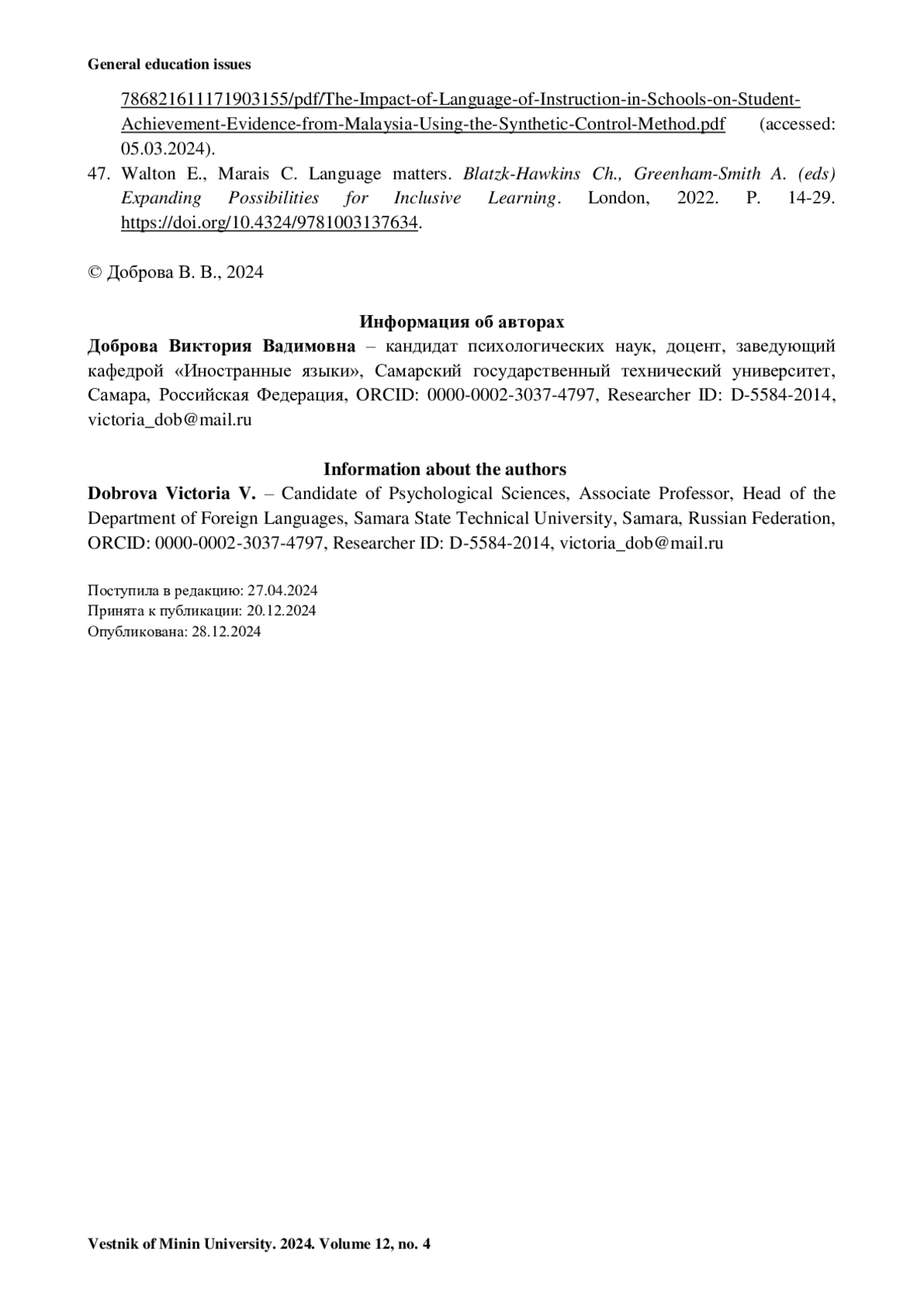 46. Walton E., Marais C. Language matters // Blatzk-Hawkins Ch., Greenham-Smith A. (eds) Expanding Possibilities for Inclusive Learning. London, 2022. P. 14-29. https://doi.org/10.4324/9781003137634.