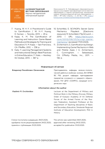 3. Орлова, О. В. Геймификация как способ организации обучения / О. В. Орлова, В. Н. Титова // Вестник Томского государственного педагогического университета. - 2015. - № 9 (162). - С. 60-64. EDN: ULYZOZ