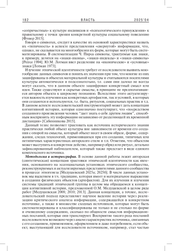 12. Медушевский Н.А. 2025а. На стыке примордиализма и конструктивизма: осмысляя понятие “этнос”. Ч. 1. - Власть. Т. 33. № 1. С. 228-233. EDN: SRJRAA
