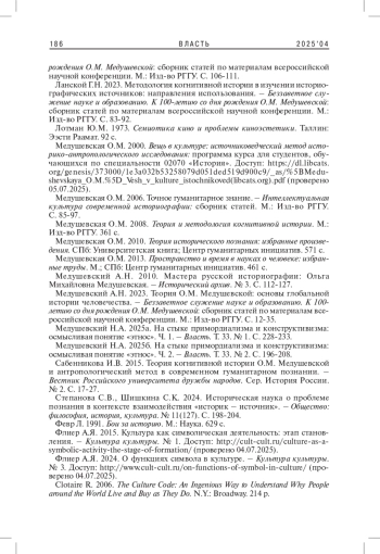 11. Медушевский А.Н. 2023. Теория О.М. Медушевской: основы глобальной истории человечества. - Беззаветное служение науке и образованию. К 100-летию со дня рождения О.М. Медушевской: сборник статей по материалам всероссийской научной конференции. М.: Изд-во РГГУ. С. 12-35. EDN: OOHPXX