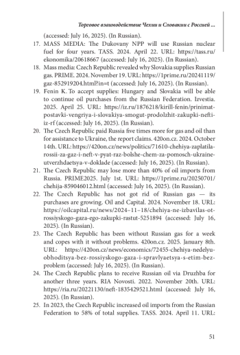 21. Чехия может потерять более 40% импорта нефти из России // ПРАЙМ. 2025. 1 июля. URL: https://1prime.ru/20250701/chehija-859046012.html (дата обращения: 16 июля 2025 года).