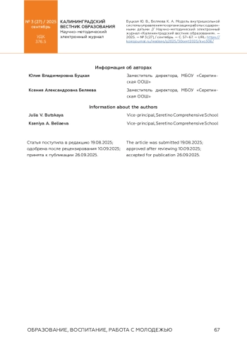 В статье представлена модель внутришкольной системы управления работой с одаренными детьми, разработанная в МБОУ «Серетинская ООШ» Белгородской области. Авторы рассматривают одаренность как динамическое качество, требующее комплексного сопровождения, и предлагают адаптивную управленческую стратегию, сочетающую индивидуальный подход, цифровые технологии и междисциплинарность. Ключевые элементы модели включают многоуровневую диагностику (наблюдение, экспертные оценки, проектные методики, цифровые инструменты); банк данных одаренных учащихся с регулярным обновлением и структурированием по видам одаренности; индивидуальные образовательные маршруты; сетевое взаимодействие с учреждениями дополнительного образования и региональными центрами; использование ресурсов центра «Точка роста» для проектно-исследовательской деятельности.