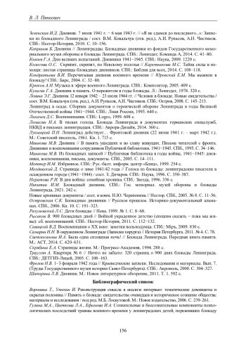 3. Рупасов А.И., Чистиков А.Н. Блокадные дневники: катастрофа в реальном времени // Записки оставшейся в живых. Блокадные дневники Татьяны Великотной, Веры Берхман, Ирины Зеленской. СПб.: Лениздат; Команда А, 2014. С. 7-14. EDN: YLVRNX