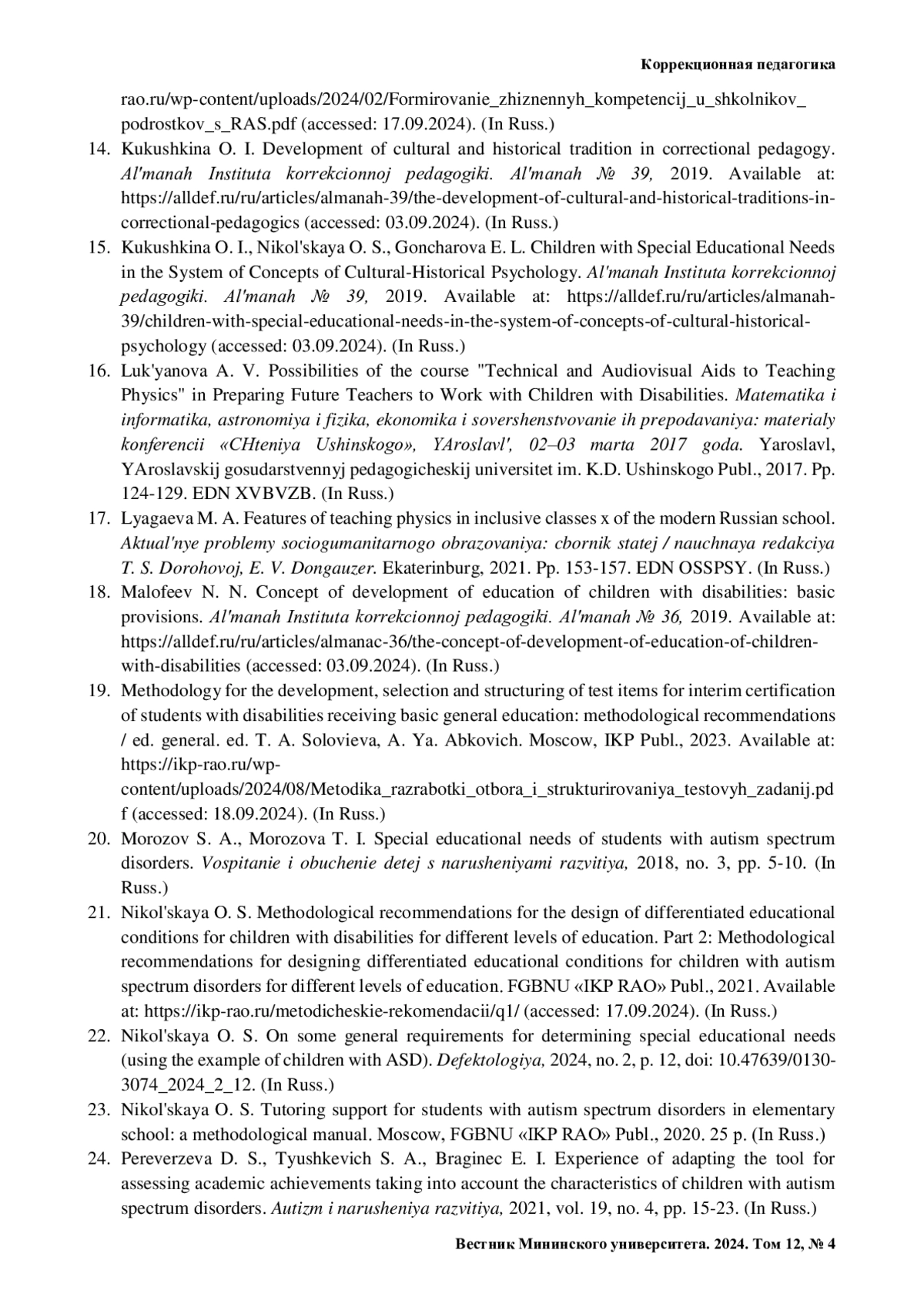 22. Никольская О. С. О некоторых общих требованиях к определению особых образовательных потребностей (на примере детей с РАС) // Дефектология. 2024. № 2. С. 12. https://doi.org/10.47639/0130-3074_2024_2_12.