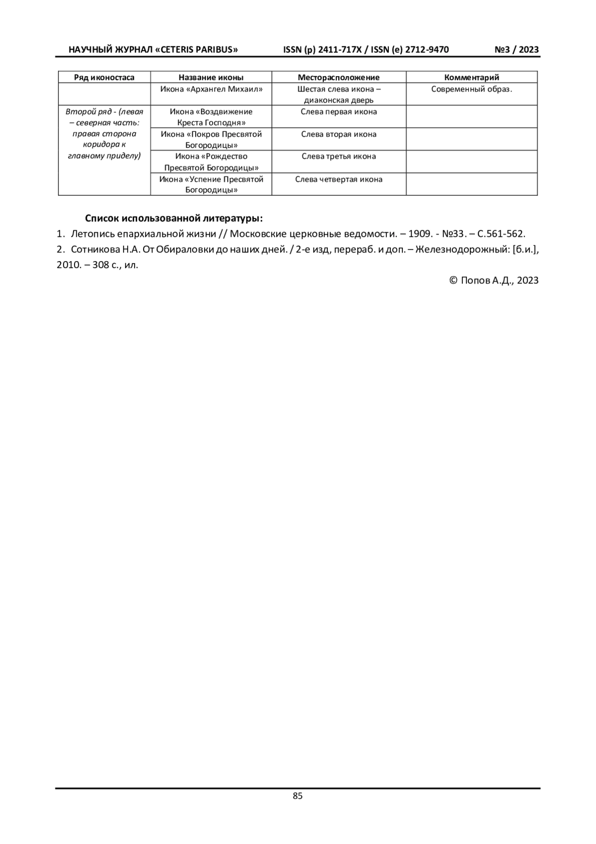 Попов А.Д. Из истории Преображенского храма в Саввино г. Балашихи: иконография // Ceteris Paribus. - 2023. - №3. - С.69-85.