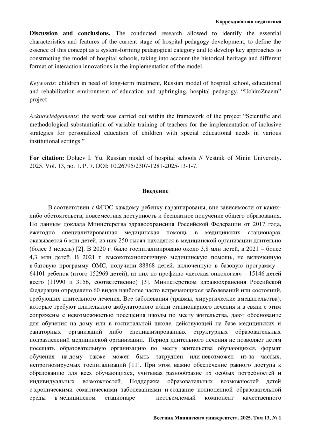 7. Лоскутов А. Ф. Госпитальная педагогика: методологические подходы // Народное образование. 2024. № 3 (1506). С. 75-84. EDN DXOCJT.