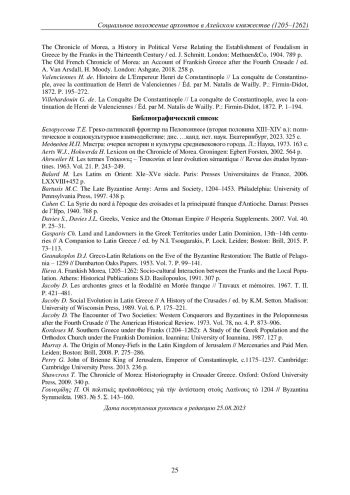 13. Jacoby D. Social Evolution in Latin Greece // A History of the Crusades / еd. by K.M. Setton. Madison: University of Wisconsin Press, 1989. Vol. 6. P. 175-221.
