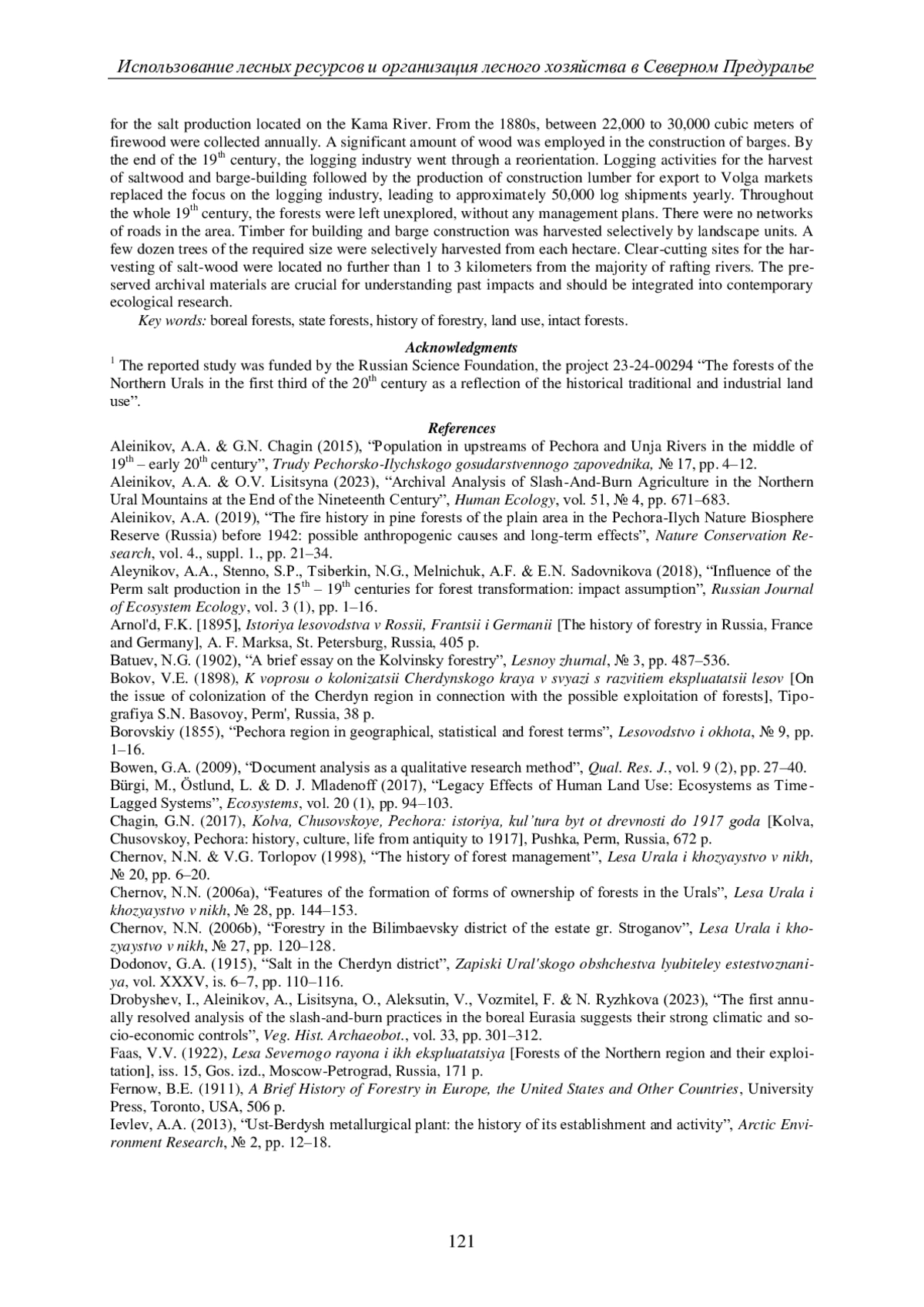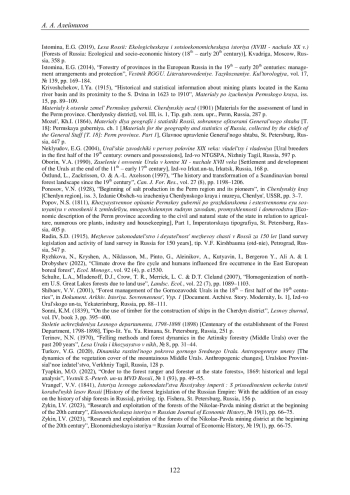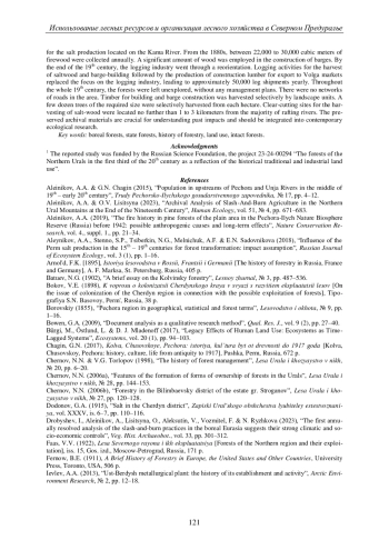 34. Aleinikov A.A., Lisitsyna O.V. Archival Analysis of Slash-And-Burn Agriculture in the Northern Ural Mountains at the End of the Nineteenth Century // Hum. Ecol. 2023. Vol. 51. P. 671-683. EDN: HMBCGH