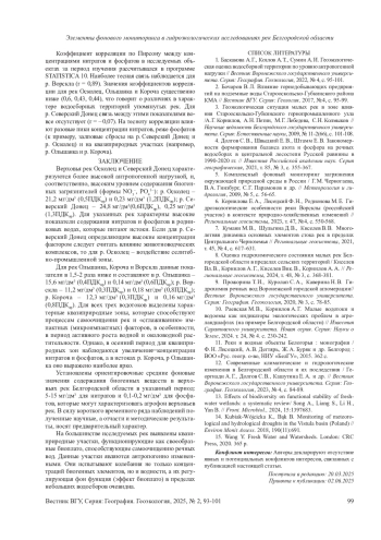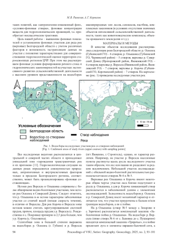 6. Корнилова Е. А., Лисецкий Ф. Н., Родионова М. Е. Гидроэкологические особенности реки Ворсклы (российский участок) в контексте природно-хозяйственных изменений // Региональные геосистемы, 2023, т. 47, № 4, с. 550-568. EDN: PETHMS