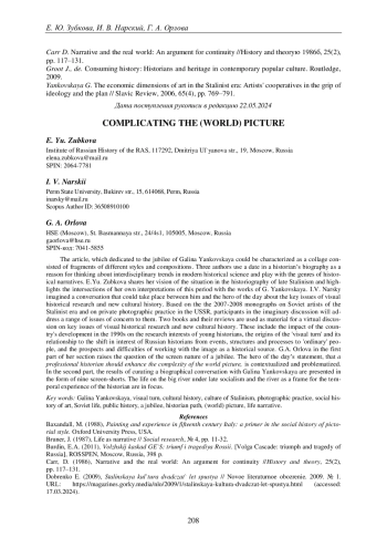 4. Зубкова Е. А. Советская жизнь как предмет исторической реконструкции // Российская история. 2019. №. 5. С. 3-14. EDN: IQLHJT