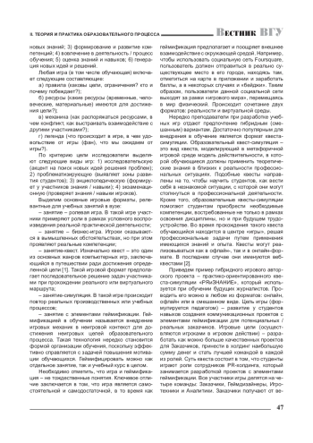 Статья посвящена актуальной теме применения игровых технологий в обучении студентов. Автор выделяет ключевые игровые форматы учебных занятий и заданий. Теоретические положения статьи иллюстрируются кейсами из авторской практики внедрения игровых технологий в образовательный процесс вуза.