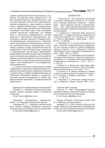1. Курносова М. Г Роль ценностных ориентаций в структуре направленности личности / М. Г. Курносова // Культура. Духовность. Общество. - Новосибирск: Центр развития научного сотрудничества, 2013. - URL: https://cyberleninka.ru/article/n/rol-tsen-nostnyh-orientatsiy-v-strukture-professionalnoy-naprav-lennosti-lichnosti.