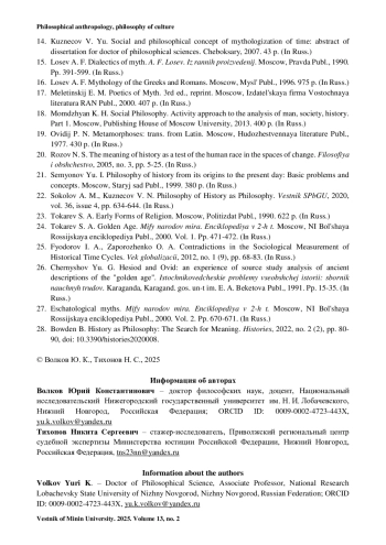 14. Кузнецов В. Ю. Социально-философская концепция мифологизации времени: автореф. дис. … д-ра филос. наук. Чебоксары, 2007. 43 с.