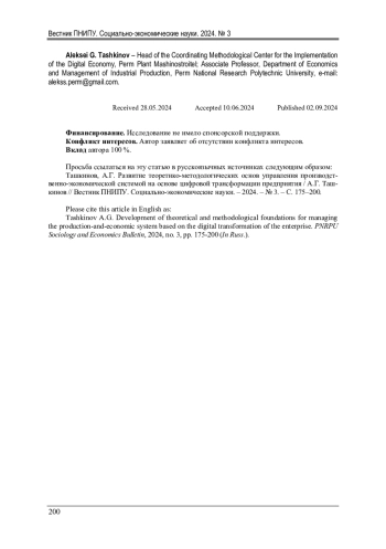 27. Ташкинов, А.Г. Разработка концепции управления развитием производственно-экономической системы предприятия / А.Г. Ташкинов // Вестник Пермского национального исследовательского политехнического университета. Социально-экономические науки. - 2023. - № 4. - С. 209-221. EDN: TUSGPS