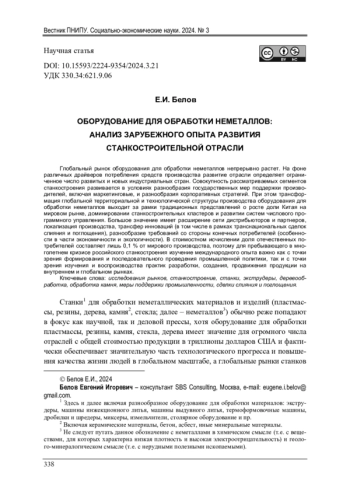 Глобальный рынок оборудования для обработки неметаллов непрерывно растет. На фоне различных драйверов потребления средств производства развитие отрасли определяет ограниченное число развитых и новых индустриальных стран. Совокупность рассматриваемых сегментов станкостроения развивается в условиях разнообразия государственных мер поддержки производителей, включая маркетинговые, и разнообразия корпоративных стратегий. При этом трансформация глобальной территориальной и технологической структуры производства оборудования для обработки неметаллов выходит за рамки традиционных представлений о росте доли Китая на мировом рынке, доминировании станкостроительных кластеров и развитии систем числового программного управления. Большое значение имеет расширение сети дистрибьюторов и партнеров, локализация производства, трансфер инноваций (в том числе в рамках транснациональных сделок слияния и поглощения), разнообразие требований со стороны конечных потребителей (особенности в части экономичности и экологичности). В стоимостном исчислении доля отечественных потребителей составляет лишь 0,1 % от мирового производства, поэтому для пребывающего в многолетнем кризисе российского станкостроения изучение международного опыта важно как с точки зрения формирования и последовательного проведения промышленной политики, так и с точки зрения изучения и воспроизводства практик разработки, создания, продвижения продукции на внутреннем и глобальном рынках.