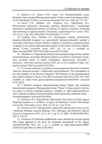17. Соколова, С.В. Фармацевтический рынок: кластерный вектор развития / С.В. Соколова, Н.Н. Карева, А.С. Иванов // Проблемы современной экономики. - 2017. - № 4 (64). - С. 173-178.