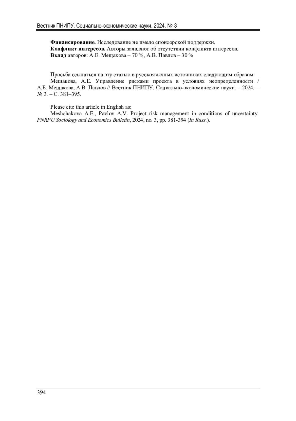 4. Бакеева, Й.Р. Управление рисками при реализации инвестиционных проектов / Й.Р. Бакеева, А.А. Козлова // Вестник Академии знаний. - 2021. - № 3(26). - С. 39-57.